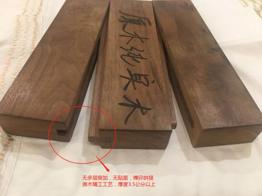所以我們在辨別的時候要認準這樣一個概念——“原木純實木”。原木純實木要求木材無貼面、無輔材、無修色,同時對工藝也有一定要求。例如臺面厚度達到3.5公分以上,用平板穿榫老底子榫卯工藝,所有柜體背板采用360°無膠新版插槽工藝等等,不但材料是純實木的,工藝也是純實木的。