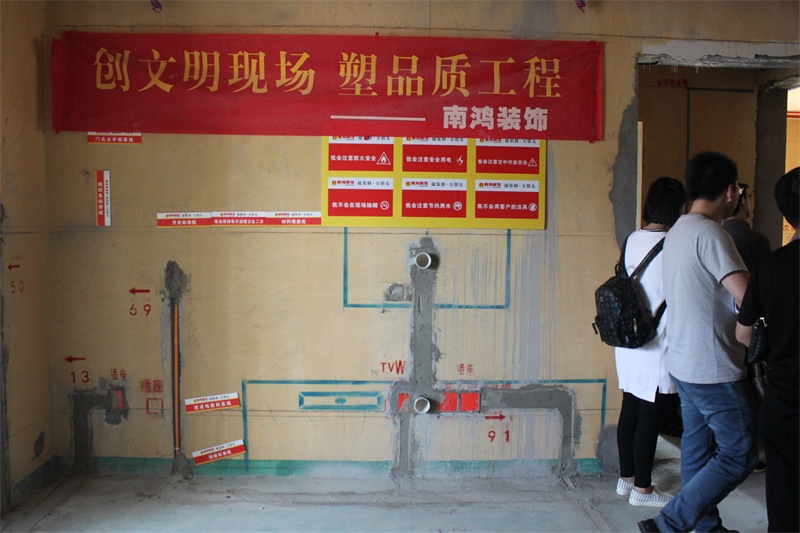 4月16日下午,杭州室外溫度高達31℃,太陽的熱情灼傷了行人的頭發(fā)。南鴻裝飾帶著20多組來自德信錢江府的業(yè)主坐著大巴來到城西金茂悅參觀南鴻在建工地的水電、泥工、木工、油漆四個環(huán)節(jié),聽工程監(jiān)理的講解,零距離觀察南鴻工地!離開工地后直奔君尚大酒店,聽各位設計師對錢江府的戶型分析講解,看免費設計方案!