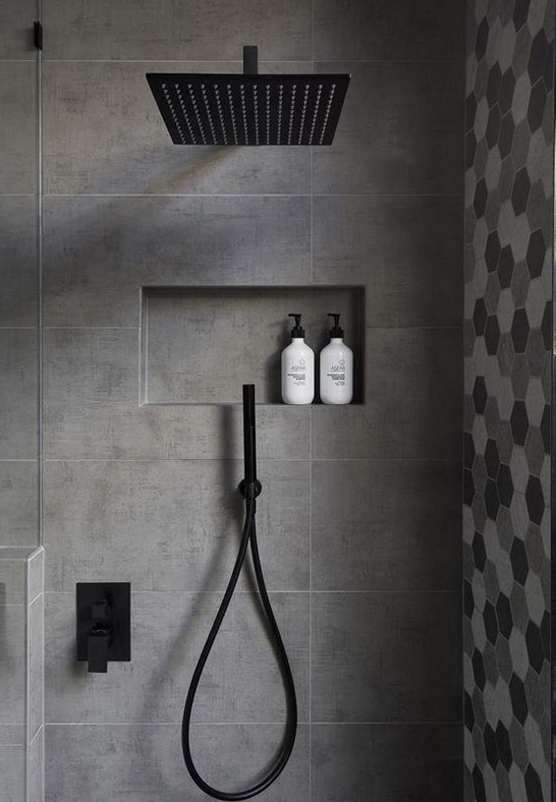而對于淋浴隔斷的濕區來話,可以直接利用下水管道位置做出壁龕的設計,用于清潔用品的擺放,這樣就解決了淋浴隔斷位置的收納空間不足問題,同時讓淋浴位置更加漂亮,最重要的是在洗澡的時候就能非常方便的取用存放,順手的動作輕松舒適。