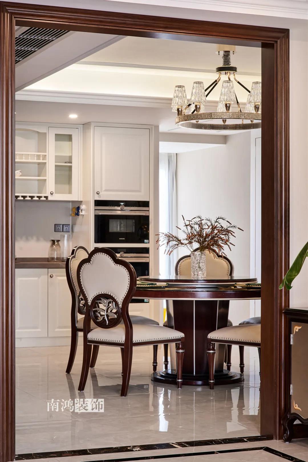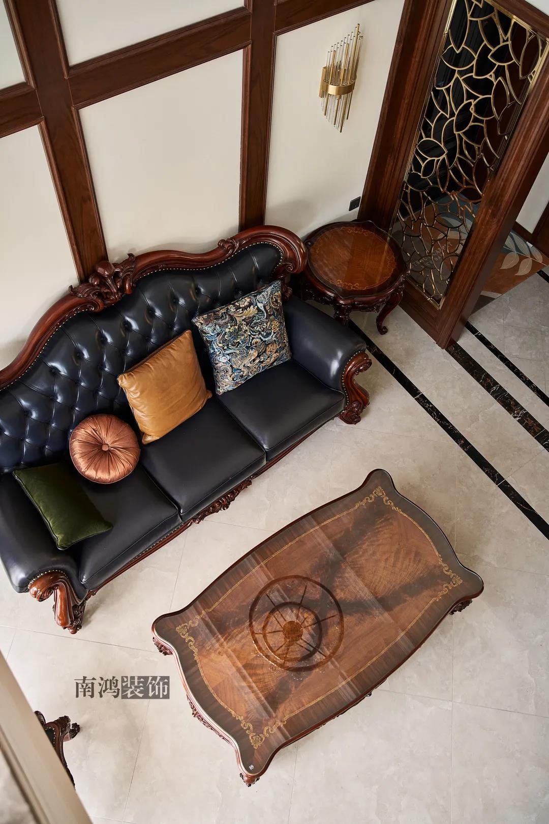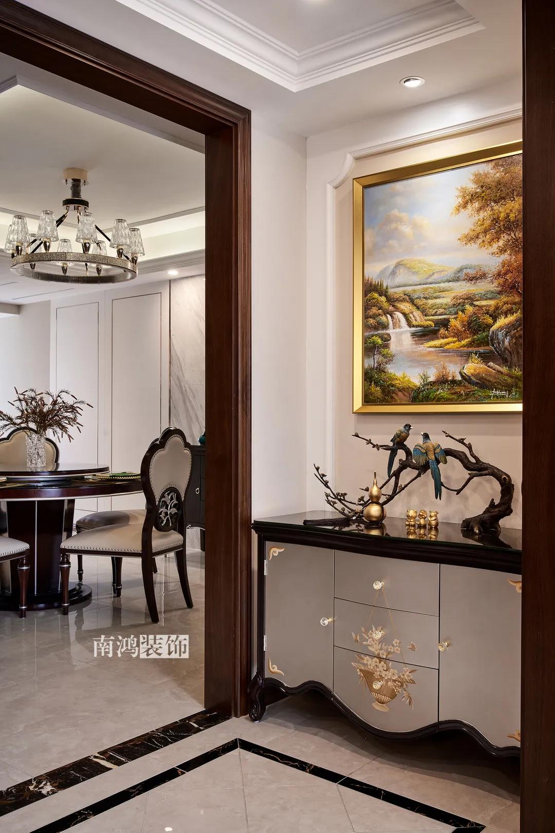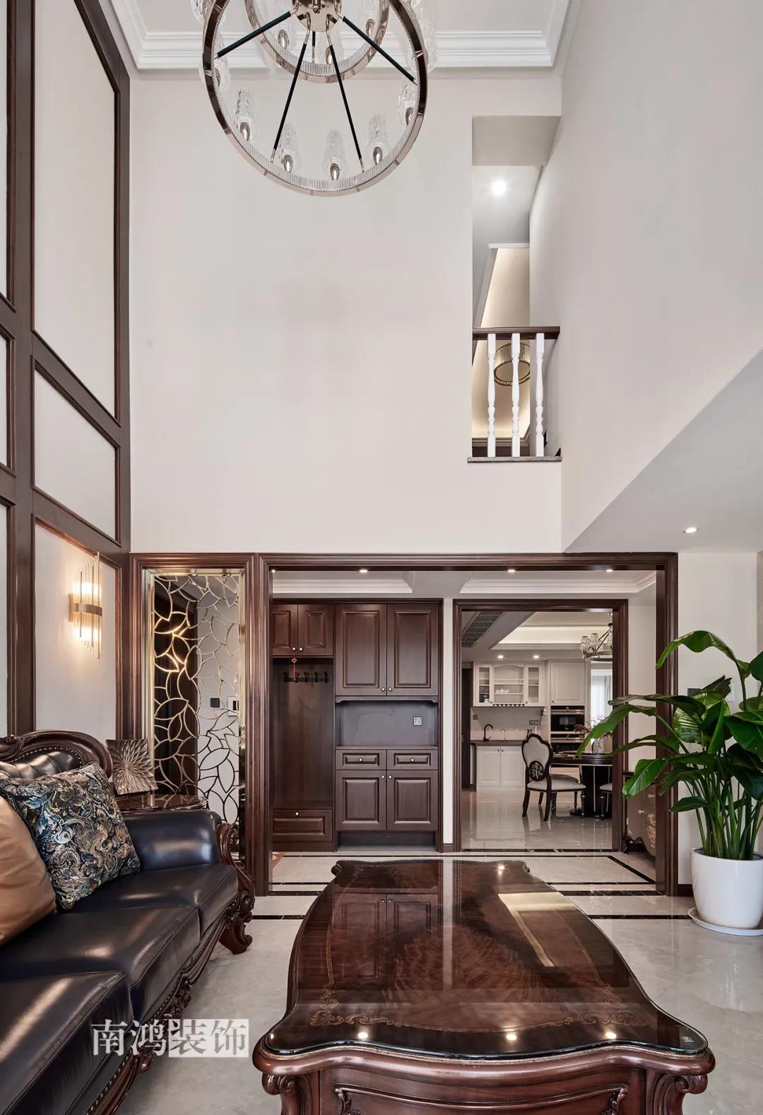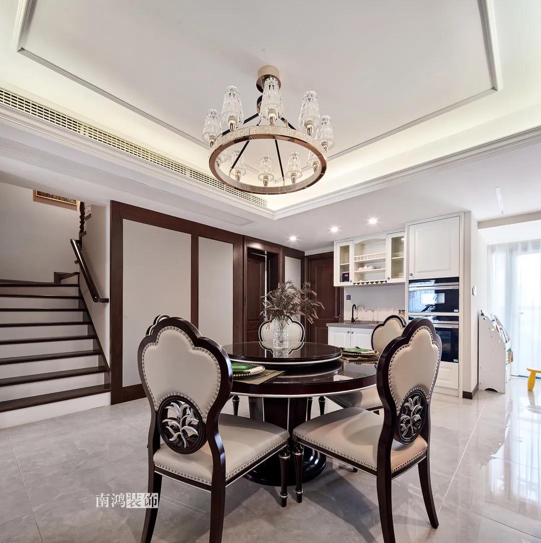 全屋雜糅了新古典、美式、中式、現(xiàn)代等風(fēng)格的軟裝陳設(shè),不同的空間有著不同的空間表情,想必每日住著看著都能感受到不一樣的趣味~ 01. 玄關(guān) ENTRANCE 正對入戶口的玄關(guān)走道,盡頭處用矮柜輔以金框風(fēng)景畫和擺件打造端景,實現(xiàn)高雅藝術(shù)表達。 02. 客廳 LIVING ROOM 轉(zhuǎn)入客廳,挑高的空間氣勢十足。軟裝材質(zhì)、色彩選擇,傳達出濃厚的歷史文化底蘊,契合業(yè)主對高檔格調(diào)的追求,同時在硬裝上簡化線條,空間更加明晰可觀。 為了滿足大家庭的活動需求,設(shè)計師將原有的客餐格局重新規(guī)劃,一層客廳在最大范圍內(nèi)打開,讓光線與氣韻流通,形成一個視野開闊、采光良好的會客休閑領(lǐng)域。從這里可以看到二樓孩子的學(xué)習(xí)讀書角。 5.4米的沙發(fā)背景墻自然成為整個客廳的視覺焦點,設(shè)計師選擇了護墻板的形式,木板分割出的造型有助于進一步拉伸層高,大氣高級的效果貫穿一二層空間。 客廳是家庭活動的重心,在裝飾上力求凸顯典雅莊重的特點。華貴的深色沙發(fā)靠墻安放,金屬鏤空隔斷在壁燈的照耀下泛起光澤,光滑的茶幾表面折射著溫度,優(yōu)雅利落的奢華感,從種種細節(jié)間流露出來。 03. 餐廳 DINING ROOM 家里人口較多,基于實際需求考慮,使用圓桌是最合理的選擇。開放式操作臺兼做餐邊柜,中西結(jié)合的餐飲習(xí)慣也在這里得到了充分的體現(xiàn)。 04. 廚房 KITCHEN 廚房選擇了傳統(tǒng)的封閉式U型格局。U型廚房可以利用三面墻壁做出充足的儲物空間,動線也很流暢,而且這種封閉式的設(shè)計,最大程度地避免了外部用餐空間被油煙侵擾的問題。 05. 樓梯 STAIRS 木白配色的樓梯低調(diào)地串聯(lián)起上下層空間,原木質(zhì)感給予家以寧靜,墻上一幅山水畫占據(jù)住了視覺焦點。 06. 臥室 BEDROOM 主臥面積寬敞,功能全面,衛(wèi)生間衣帽間休閑區(qū)一應(yīng)俱全。 睡眠區(qū)風(fēng)格莊重,儀式感足,皮革硬包背景搭配華貴家具,細節(jié)處倍感精致。 主臥的休閑區(qū),天氣好的時候,柔和的光線透過窗子灑進陽臺,優(yōu)雅的主人坐在舒適的躺椅上靜靜品茶、看書,理想中的歲月靜好似乎照進了現(xiàn)實。 女兒房,顏色飽和度都很低,一種純粹的設(shè)計和生活方式就這樣被喚醒。 二樓兒童房。兒童房是孩子對色彩、形狀產(chǎn)生最初認知的地方,所以在設(shè)計上不僅要注重實用性,更要注重趣味性。童趣主題墻面、云朵狀的床頭、可愛的小掛衣桿,能讓小朋友在這里充分探索未知、創(chuàng)造快樂! 07. 露臺 TERRACE 露臺存在的意義,大概就是:清晨的時候泡上一杯茶,等待陽光喚醒頭腦;傍晚的時候,可以在這里享受晚風(fēng)、星月,體驗都市生活中難得的一刻放松。再多養(yǎng)幾盆花花草草,讓美好盡情綻放~ 08. 衛(wèi)生間 BATHROOM 具有現(xiàn)代感的主衛(wèi)空間使用灰黑色主調(diào),懸空式的長臺盆柜輕盈時尚,燈光布置層次分明,功能性與美感得到了統(tǒng)一。 客衛(wèi),玻璃淋浴間實現(xiàn)簡單的干濕分離,金色的水龍頭與臺盆柜把手、落腳更顯精致。 平面戶型圖 -- ·項目信息· 項目名稱:金都華庭 建筑類型:復(fù)式 設(shè)計風(fēng)格:混搭 項目地點:中國·杭州 項目面積:230㎡ 項目服務(wù):設(shè)計·施工·硬裝·軟裝 全案設(shè)計 設(shè)計單位:浙江南鴻裝飾 施工單位:浙江南鴻裝飾