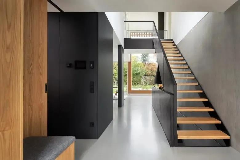 有的樓梯經(jīng)過改造后,成了家里一道亮麗的風(fēng)景線;有的戶型通過更改樓梯位置,使空間動(dòng)線得到優(yōu)化,讓生活更加便捷。本期就帶大家了解關(guān)于室內(nèi)設(shè)計(jì)中樓梯的一些干貨知識(shí)吧~ 樓梯的形式 一般來說,樓梯應(yīng)用有這三種基本形式:直梯、弧型梯和螺旋梯。 直梯根據(jù)梯段的不同,可分為單跑、雙跑及三跑樓梯。直梯在生活中最常見,適合各種戶型。 弧型梯是以曲線來實(shí)現(xiàn)上下空間連接的一種樓梯形式,踏步略呈扇形,裝飾性比較強(qiáng),多見于工裝。 螺旋梯外形最為突出,主要是以扇形踏步支承在中立柱上,占用空間面積最小。這種樓梯線條感非常強(qiáng),而且做懸浮式居多,自帶藝術(shù)屬性! 樓梯的材質(zhì) 打造樓梯常用的材質(zhì),主要有木質(zhì)、鋼材、鐵藝、石材、水泥、玻璃等,而且基本都用組合混搭的形式,比如鋼結(jié)構(gòu)+木踏板、玻璃扶手+大理石等等。 鋼結(jié)構(gòu)樓梯施工便利,不像現(xiàn)澆筑樓梯需要模板,使用螺栓和焊接就可以進(jìn)行連接。木質(zhì)樓梯則視感溫潤(rùn),保暖效果好,不過耐磨性較差,不易保養(yǎng)和維護(hù)。 常用做法是利用鋼結(jié)構(gòu)作為基底,在表層使用木質(zhì)踏板,在獲得穩(wěn)固受力的同時(shí),可以避免全木樓梯走路發(fā)出聲音的問題。 鐵藝樓梯同鋼結(jié)構(gòu)樓梯一樣,整體造型簡(jiǎn)約,能體現(xiàn)金屬材料的線條美感,并且具有較強(qiáng)的防腐蝕、耐氧化的能力,還可以通過靜電噴漆和保持干燥來延長(zhǎng)使用壽命。 石材樓梯一般與室內(nèi)色彩材料具有統(tǒng)一性,防潮耐磨,易于保養(yǎng),大理石樓梯還是很多大型空間的第一選擇。 ▲漂亮而奢華的大理石樓梯 樓梯的實(shí)用設(shè)計(jì) 接下來我們說一說日常生活中讓樓梯更具實(shí)用性的幾種設(shè)計(jì)。 收納問題是很多業(yè)主的首要考慮,畢竟隨著居住時(shí)間的增加,家里要放的東西肯定會(huì)越來越多,儲(chǔ)藏空間太少怎么行。 所以結(jié)合收納就成了一種常見也很實(shí)用的樓梯利用方式,尤其是在面積不太大的戶型中。 如果條件允許,可以直接在樓梯下設(shè)置那種小型的儲(chǔ)物間,盡量做到空間的高效化利用。 除了儲(chǔ)物收納以外,也可以將樓梯下的空間設(shè)計(jì)成休閑區(qū),或與書房、餐廳等其他區(qū)域結(jié)合。 ▲做休閑區(qū) ▲做書房 ▲結(jié)合餐廳 樓梯的實(shí)用尺寸 樓梯踏步:踏步的高和寬是由人的步距與人腿的長(zhǎng)度來確定的,踏步的寬度以不小于24cm為宜,高度一般不宜大于17.5cm。 樓梯坡度:樓梯的常用坡度在20°-45°,最佳坡度在30°左右。 樓梯梯段寬度:通常單人通行的梯段不應(yīng)該小于80cm,雙人通行的梯段約在l00cm—120cm。 樓梯扶手高度:扶手的高度約為90cm,樓梯平臺(tái)的扶手高度應(yīng)該在90cm—110cm。 最后,關(guān)于樓梯設(shè)計(jì),小伙伴們又有什么好的idea呢?